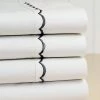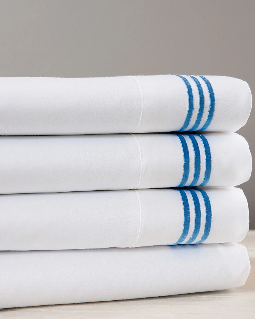- White sateen sheet set with blue three-line stitching