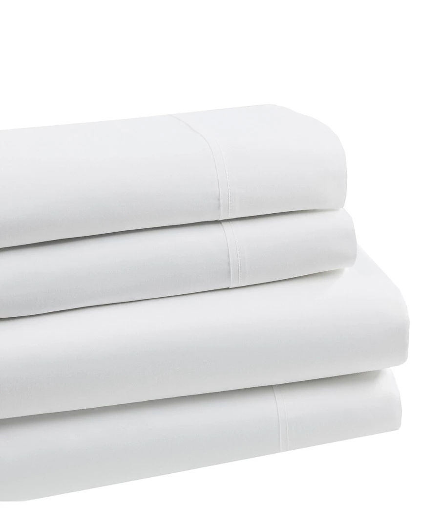 - Cal King: flat sheet (108in x 102in); fitted sheet (72in x 84in); two pillowcases (20in x 40in)